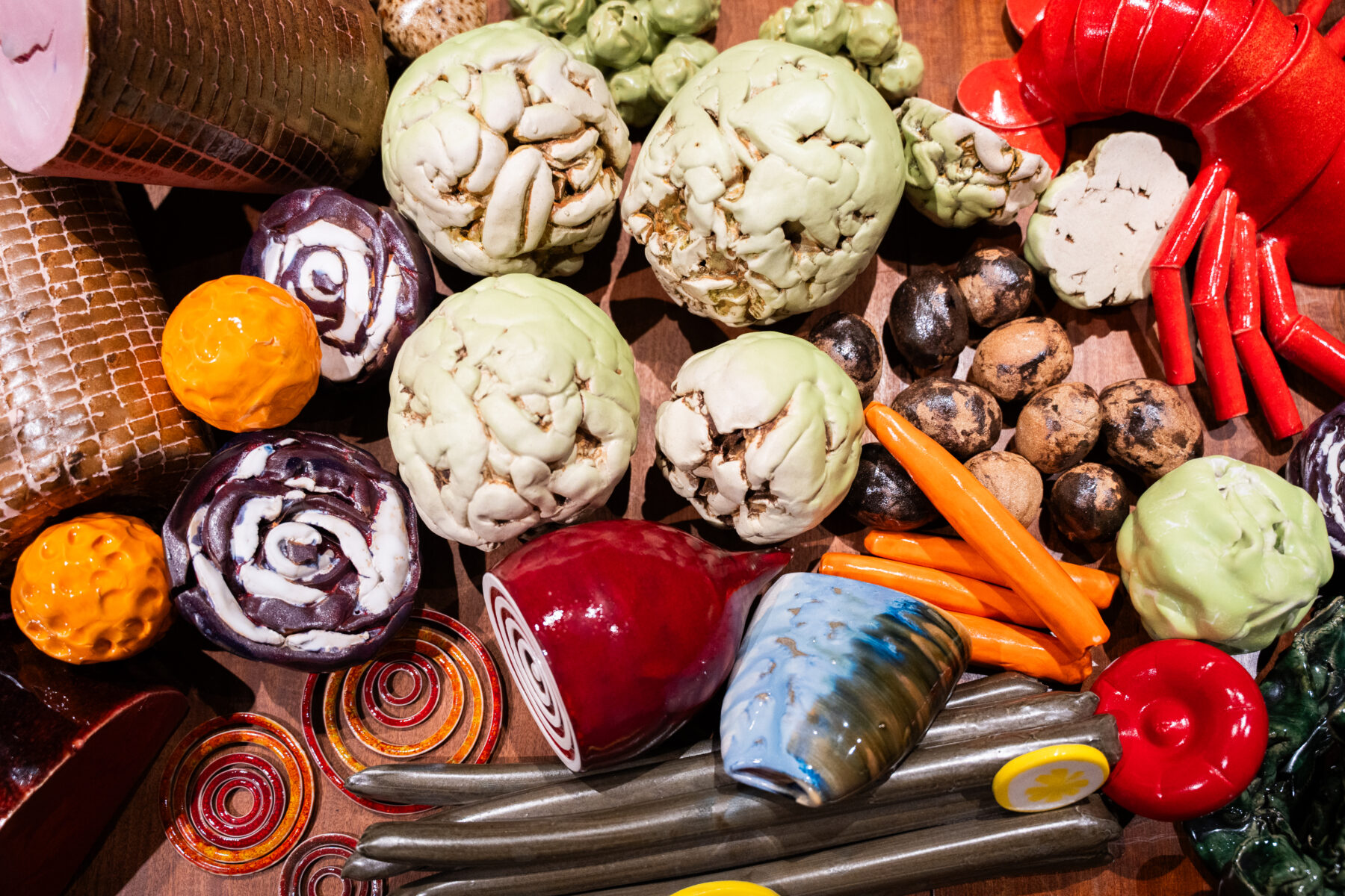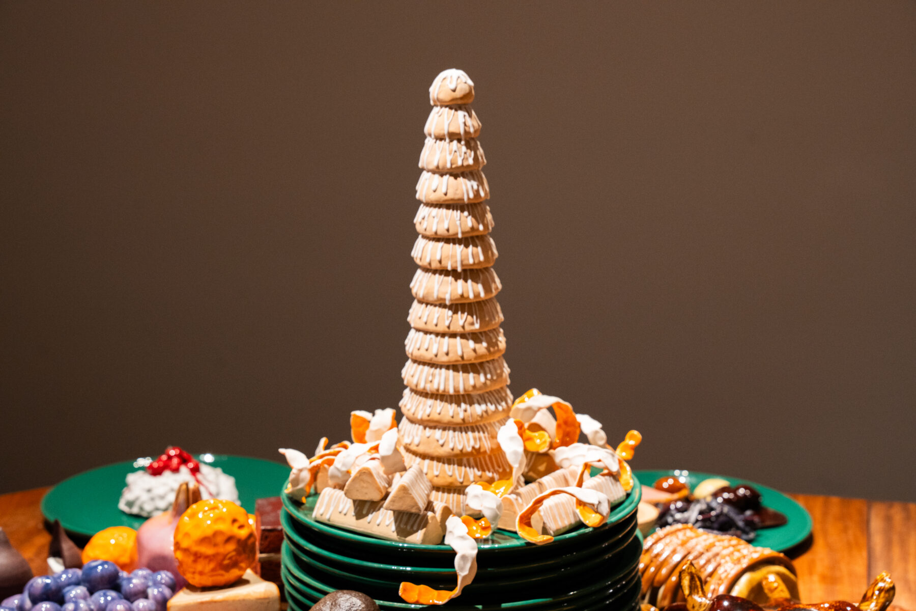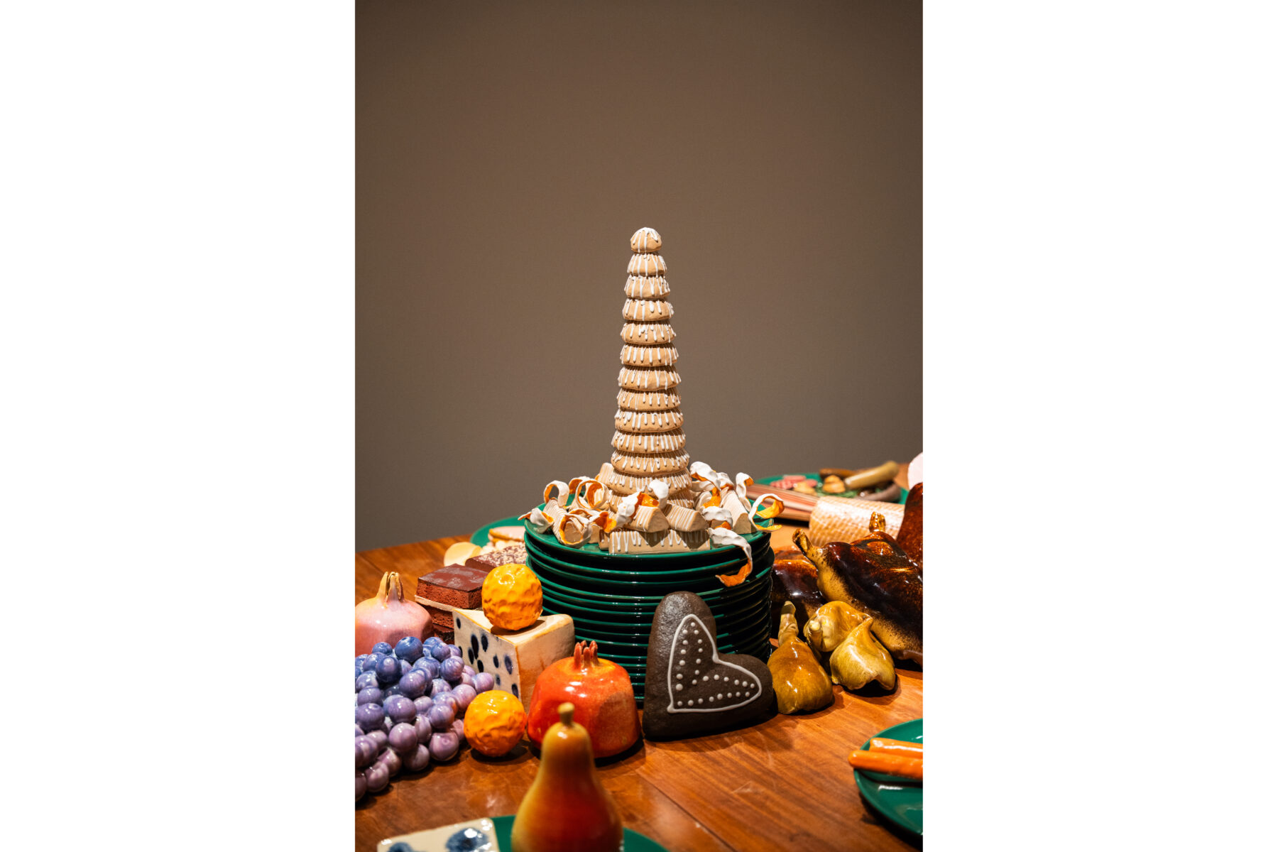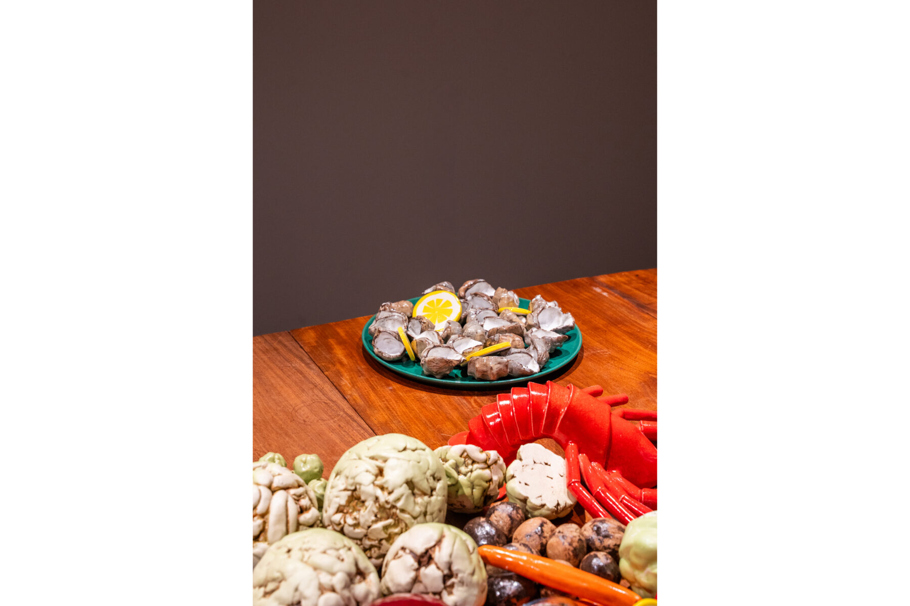 Til LABORATORIUM på Designmuseum Danmark har vi skabt en julebuffet bestående af retter udformet som keramiske værker. Udstillingen er en del af vores projekt Keramiske Food Processer, hvor vi skaber mad i keramik, som udspringer af særlige teknikker og arbejdsgange. Udstillingen giver indblik i vores kreative proces og værkstedspraksis. Udstillingen vises på Designmuseum Danmark til og med 4/12-2026.