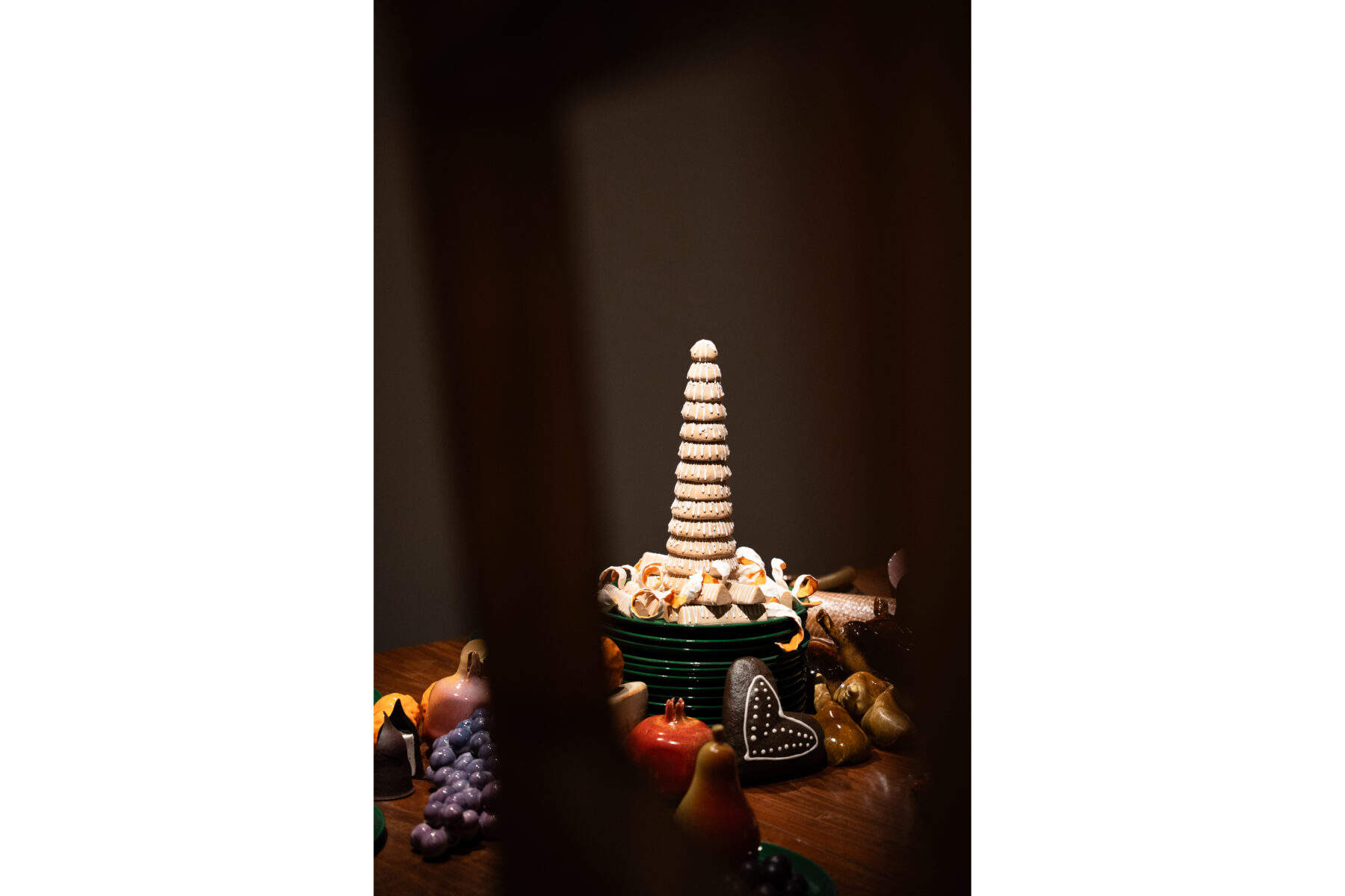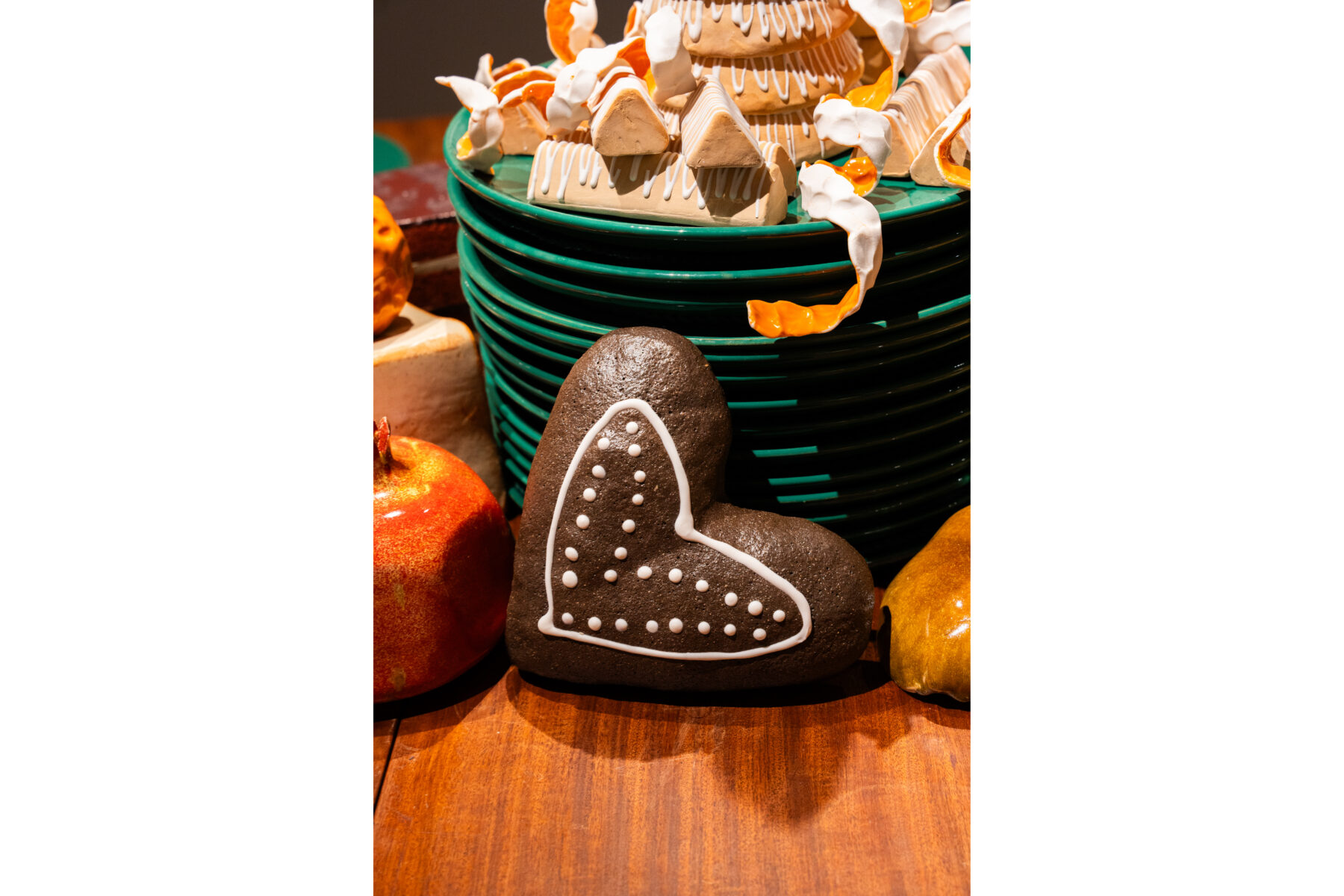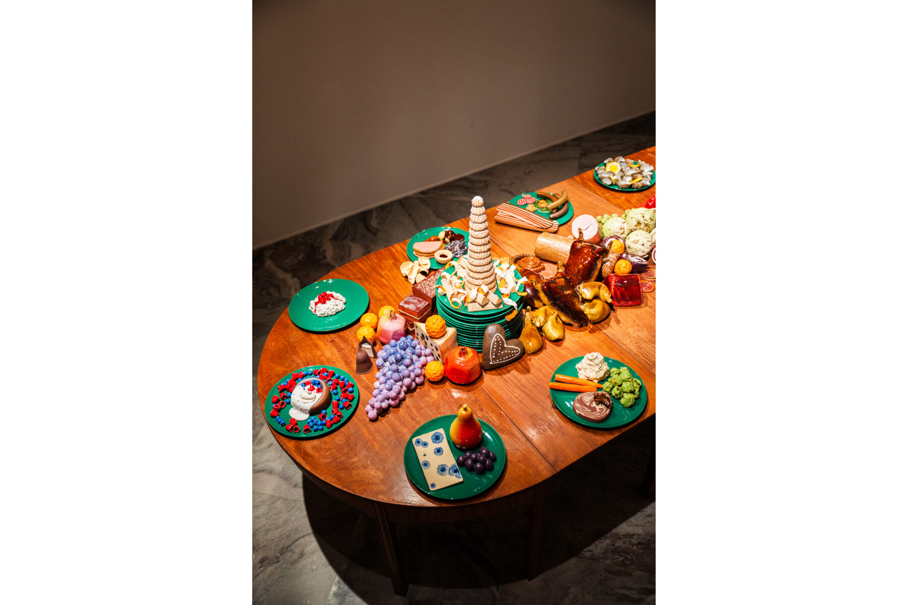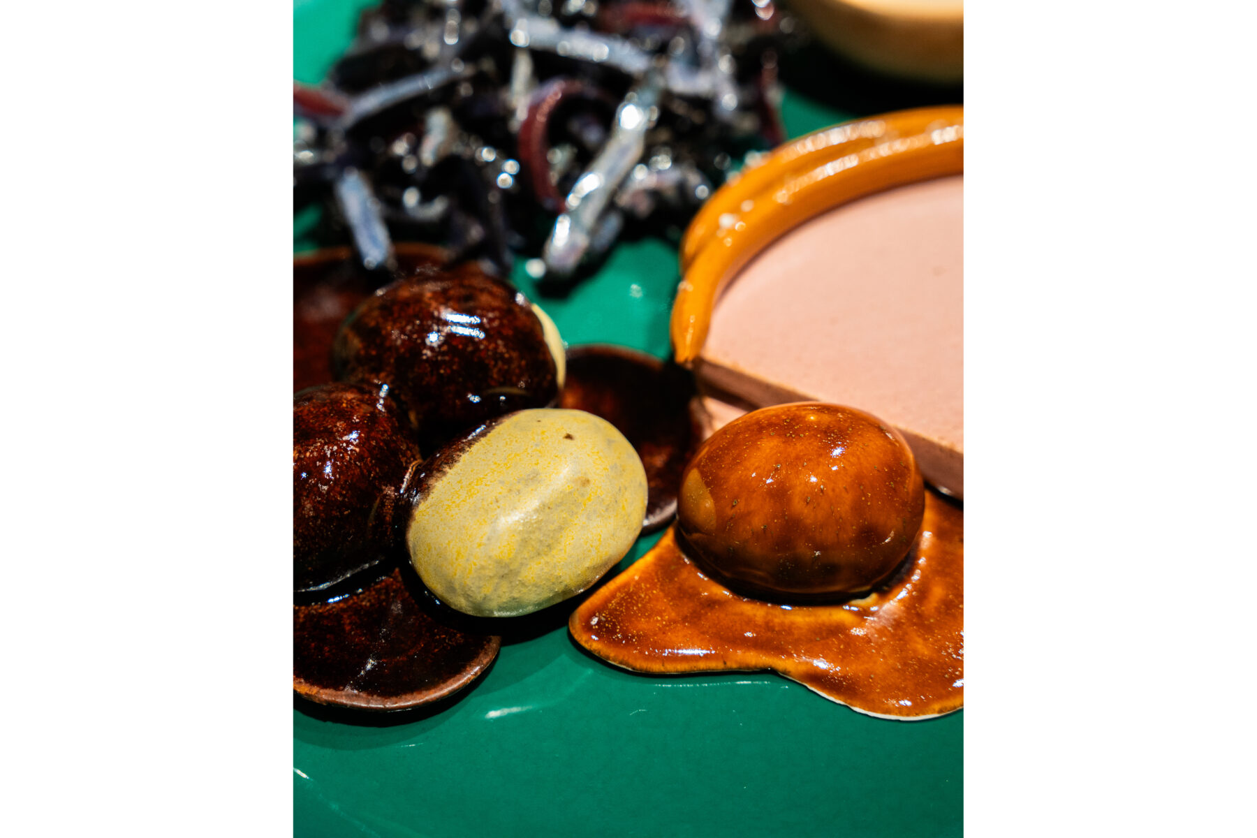Til LABORATORIUM på Designmuseum Danmark har vi skabt en julebuffet bestående af retter udformet som keramiske værker. Udstillingen er en del af vores projekt Keramiske Food Processer, hvor vi skaber mad i keramik, som udspringer af særlige teknikker og arbejdsgange. Udstillingen giver indblik i vores kreative proces og værkstedspraksis. Udstillingen vises på Designmuseum Danmark til og med 4/12-2026.